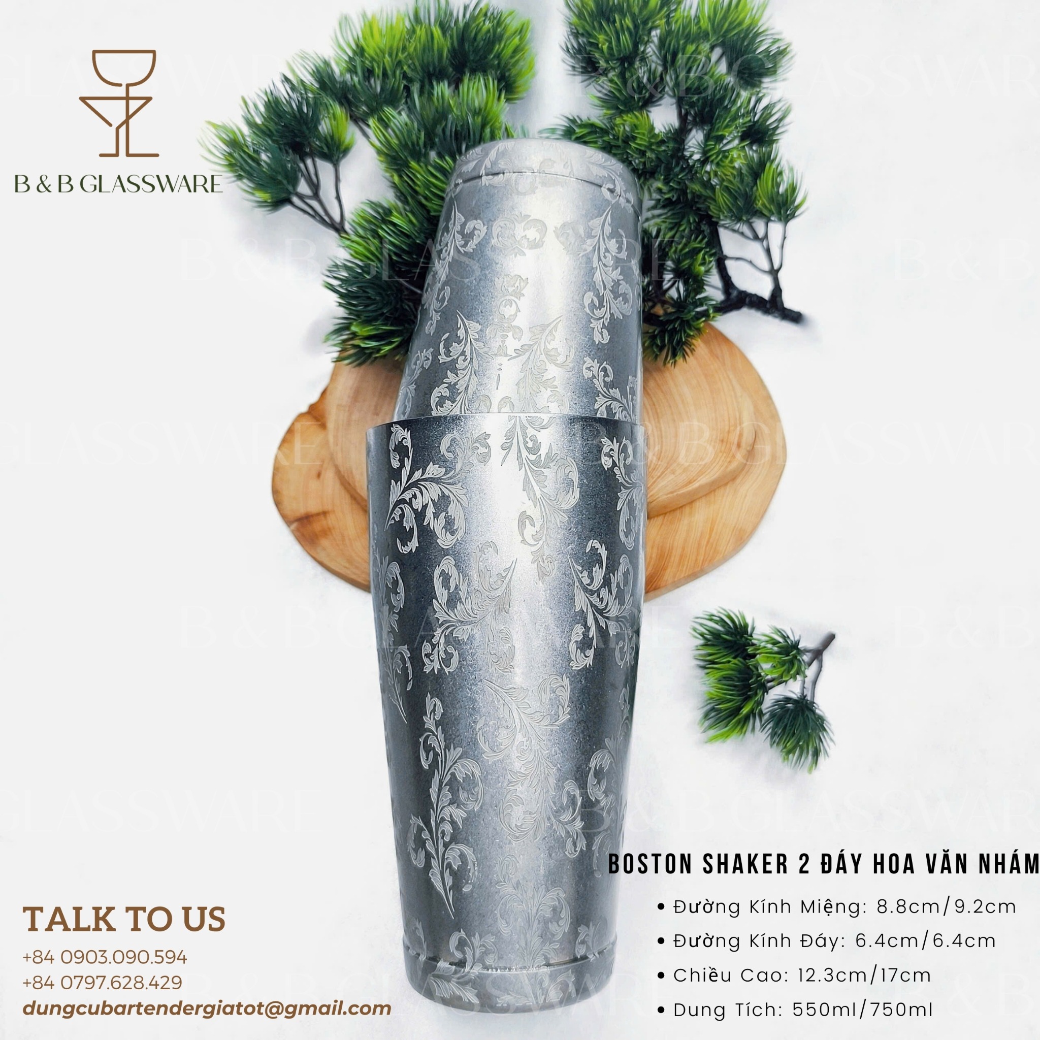 - Tên sản phẩm: Bộ Boston Shaker 2 Đáy Hoa Văn Nhám